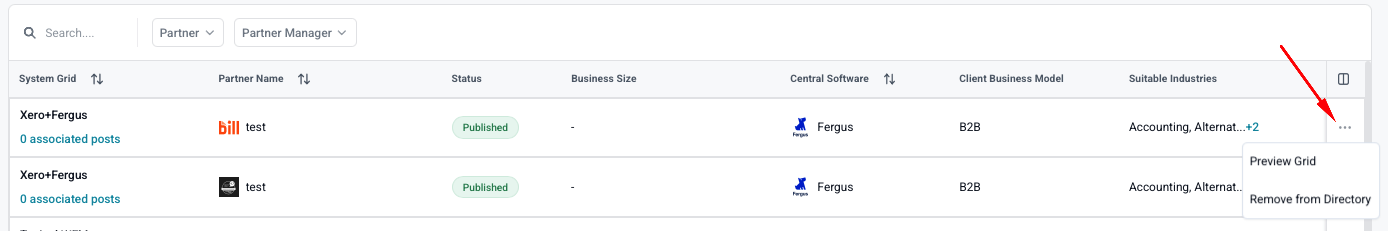 Use the three dots to preview Grid, Add, or Remove from the Directory.