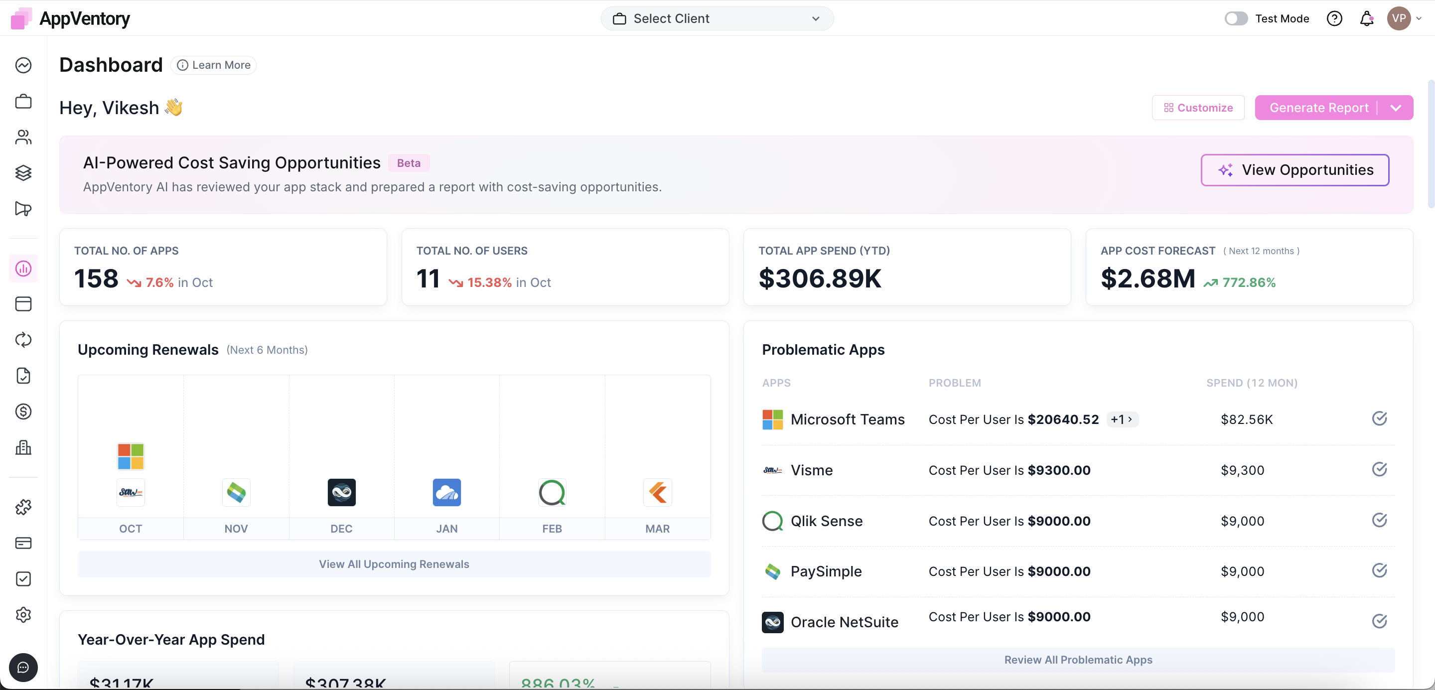 The Dashboard serves as the command center for app visibility, financial tracking, feedback collection, and task execution. With features like advanced forecasting and the new Software Financial Review Report, it enables teams to maintain transparency, assign accountability, and optimize the organization's software ecosystem through timely insights and integrations.