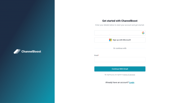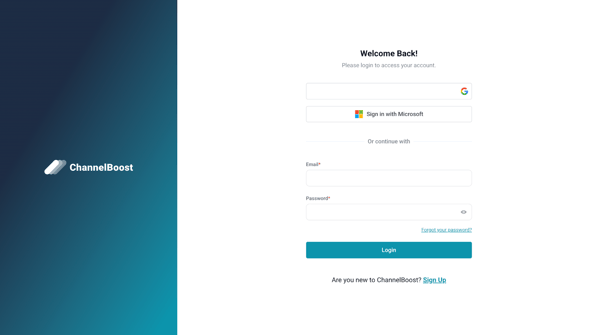 New users can explore ChannelBoost features by signing up for a free plan. No charges will be applied, and credit card information is not required during the trial period.