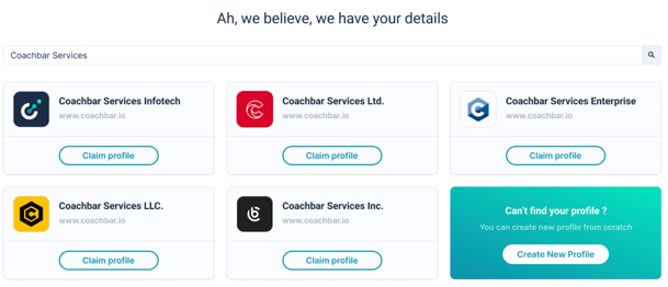 - If a company profile exists in the database, a list of relevant search results appears, allowing users to select and claim the appropriate profile.