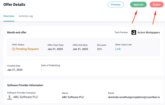 Once you’re on the offer’s details page, you will see the Approve and Reject buttons: