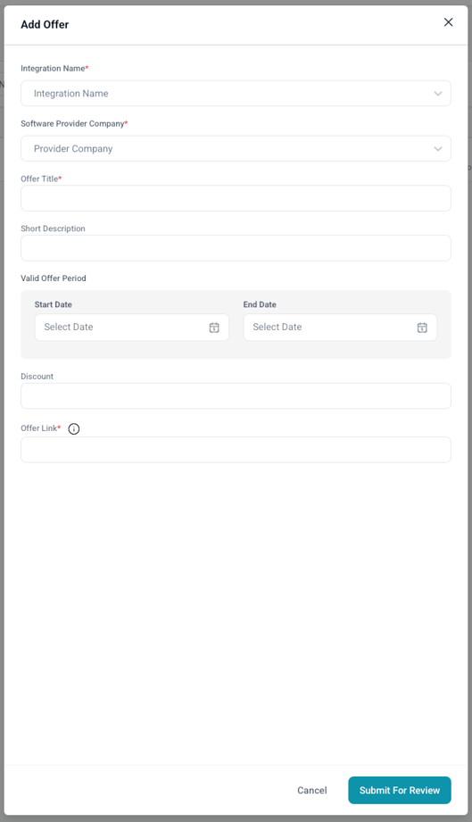 The Offers tab allows you to create and manage promotional offers that are displayed in the TechPartner Directory, helping them work closely with Software Providers. Partners can add, edit, and track offers that complement integration, making it easier for them to showcase valuable services like setup assistance or consultation. These offers are visible in the TechPartner Directory, which increases their exposure to potential clients.