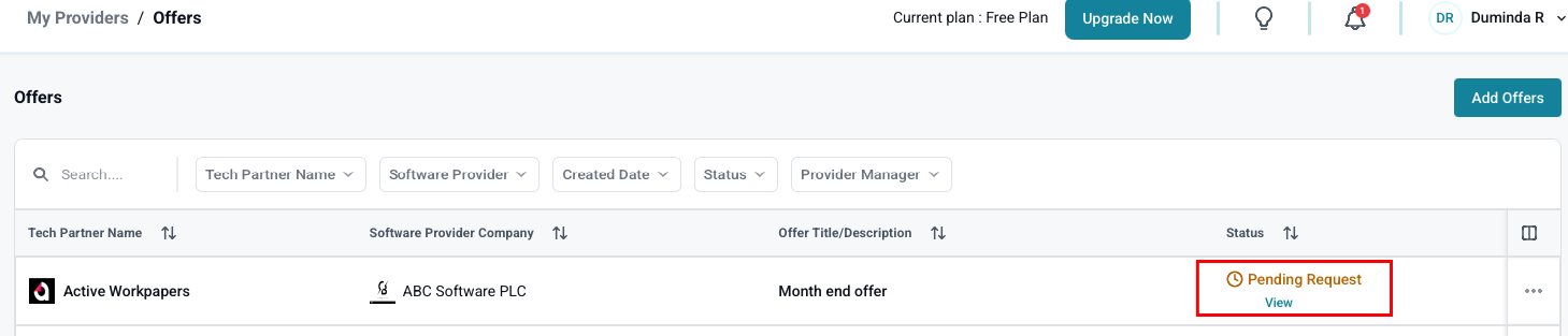 When a provider creates an offer, you will be notified via email and through the bell icon (depending on your notification settings). The offer will have a "Pending Request" status.
