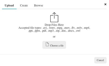 The upload tab allows you to upload any content including videos that can be viewed. If you wish to create your own, move to the Create tab and select one of the following.