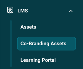 The Co-Branding Assets feature enables users to create, customize, share, and manage co-branded marketing assets. This functionality is accessible under the LMS tab via the Co-Branding submenu. Users can create assets and organize them into folders while maintaining control over editing, approval, and distribution processes.