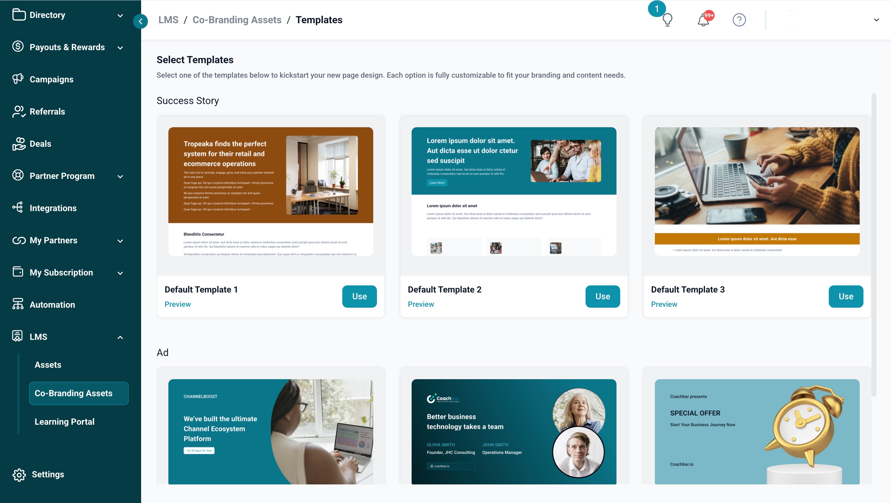 A new lone function enables the duplication of existing co-branded assets for reuse. This feature is particularly useful when similar layout s or messaging are required for multiple partners, allowing starting from a blank template.