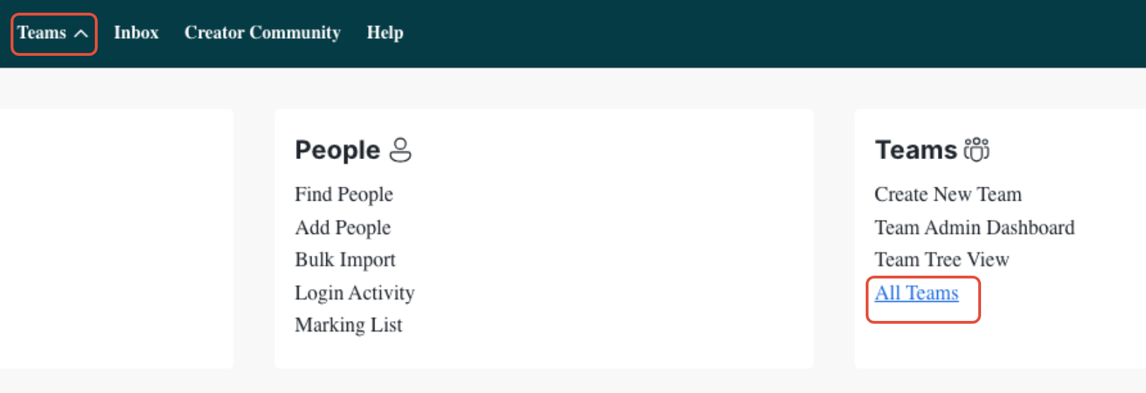 Once done, you would need to assign to relevant teams. Teams meaning, your set of partners, or internal staff. Navigate to teams, all teams.