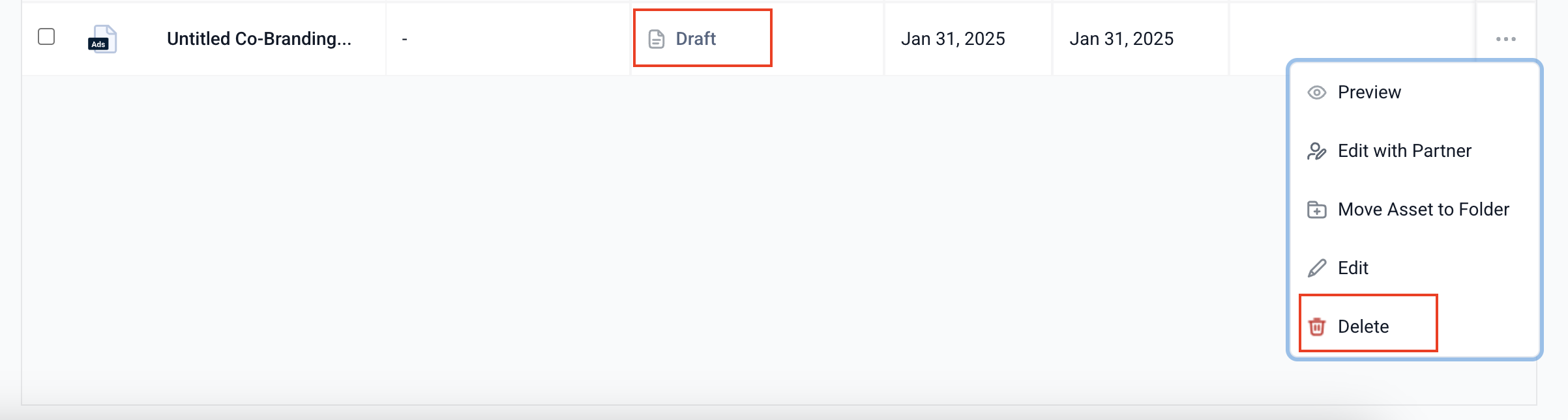 Note: Only co-branded assets with Approved or Draft status will remain beyond 14 days. Assets in other statuses will be auto-deleted after the 14-day window for workspace cleanliness.