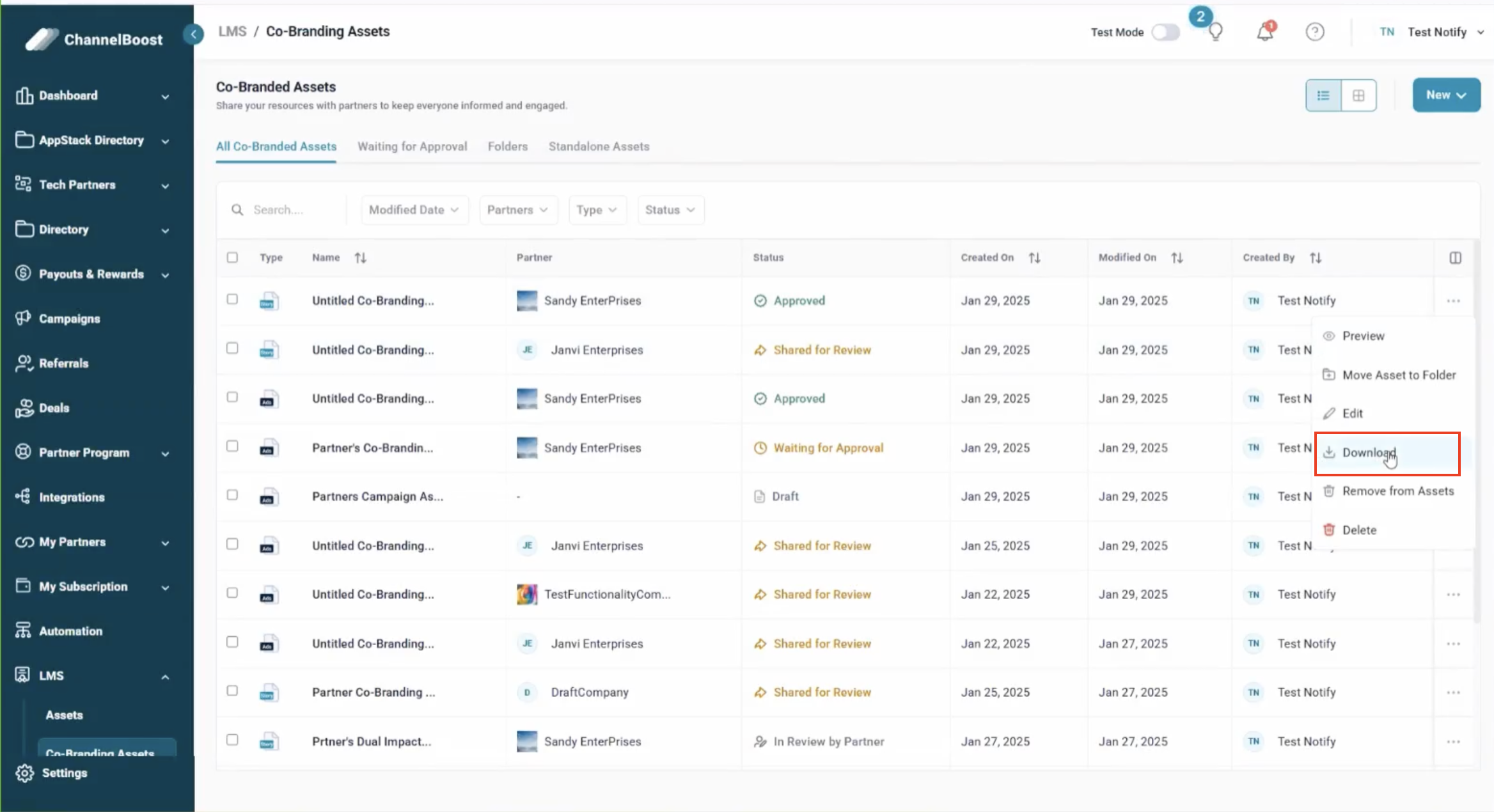 - Real-Time Branding Preview: Co-branded assets now offer a live preview with partner-specific details such as logos and names dynamically inserted before finalizing the asset.