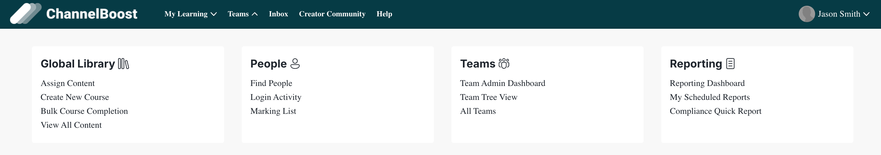 By default, the owner of the Coachbar account becomes the administrator of the learning portal, which provides the following accesses.