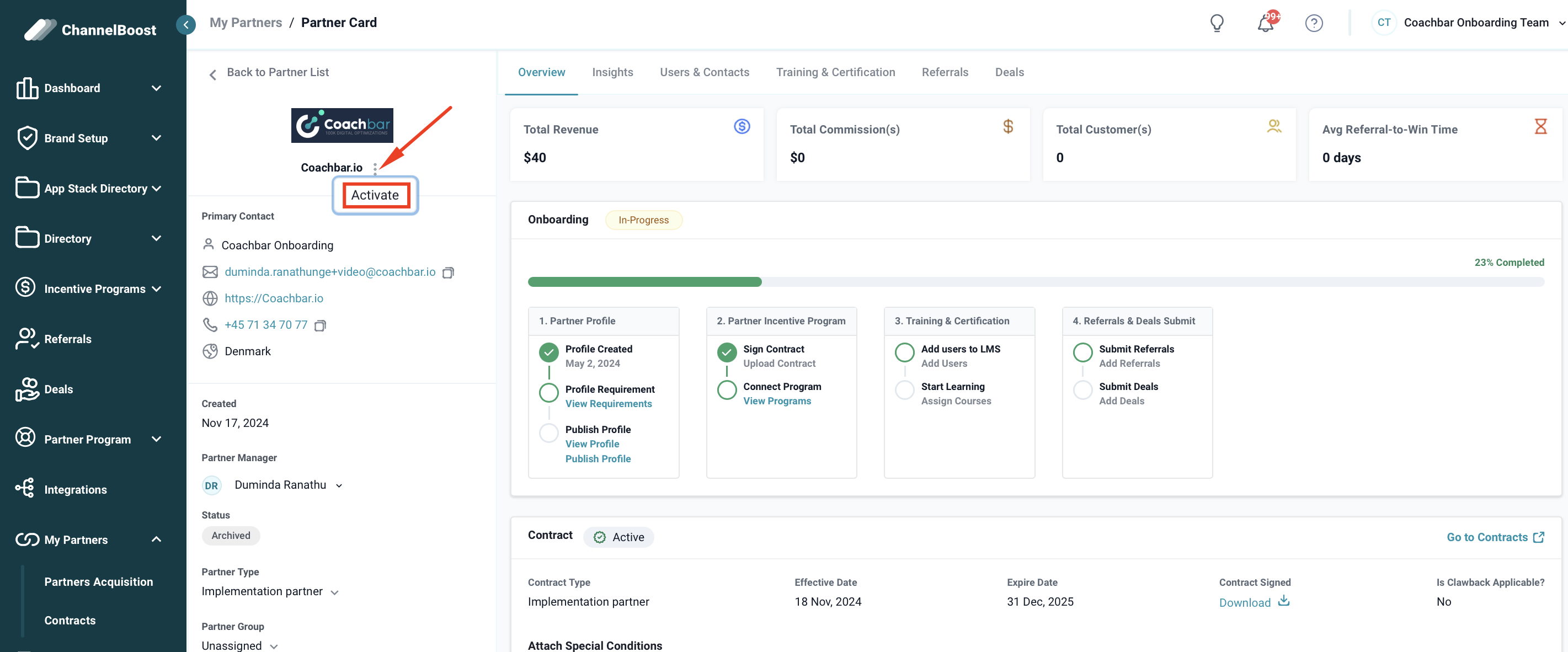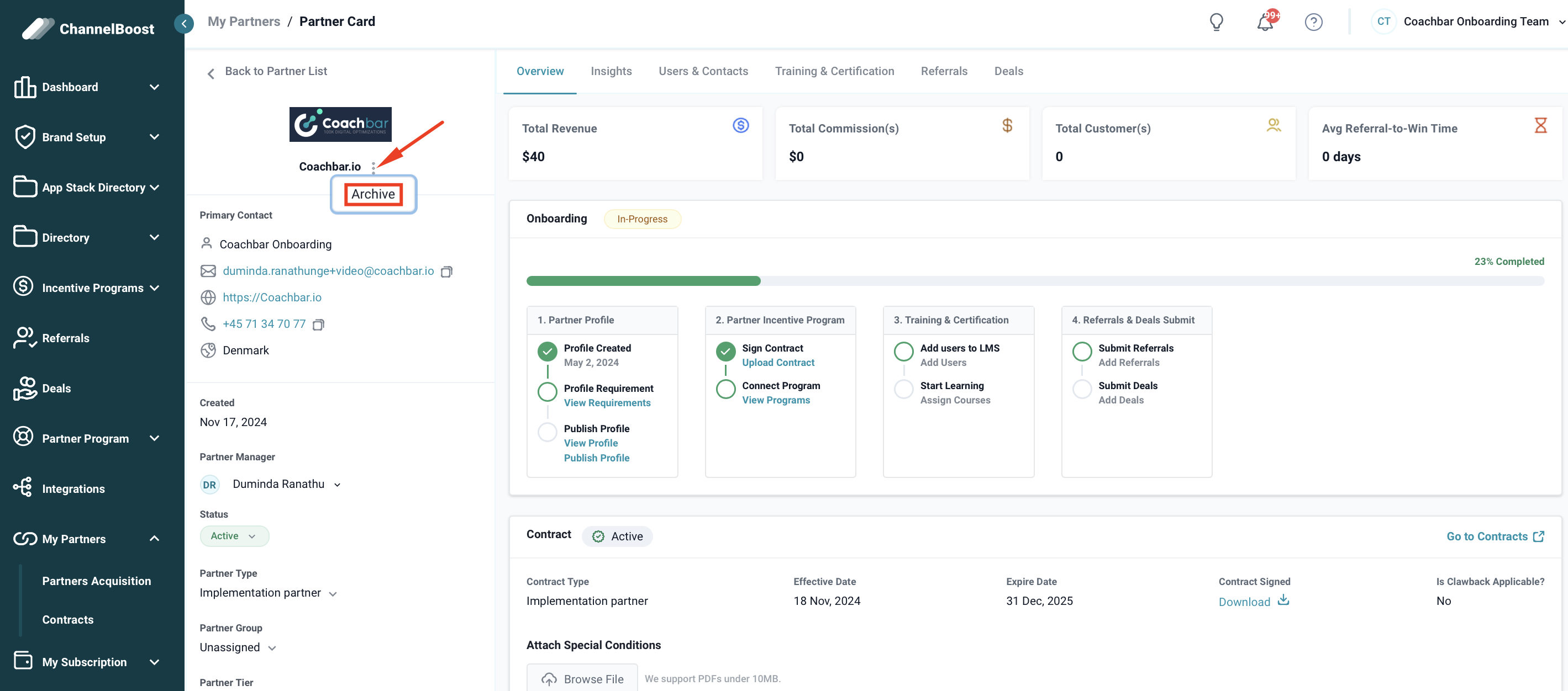 In this article, we will discuss the process of sending and managing contracts with your partners and maintaining their profile within ChannelBoost.