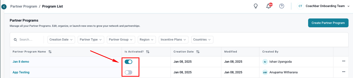- Deactivate the Program: De-select the radio button to deactivate the program. This makes it temporarily unavailable to partners while keeping all data intact for future use or updates.
