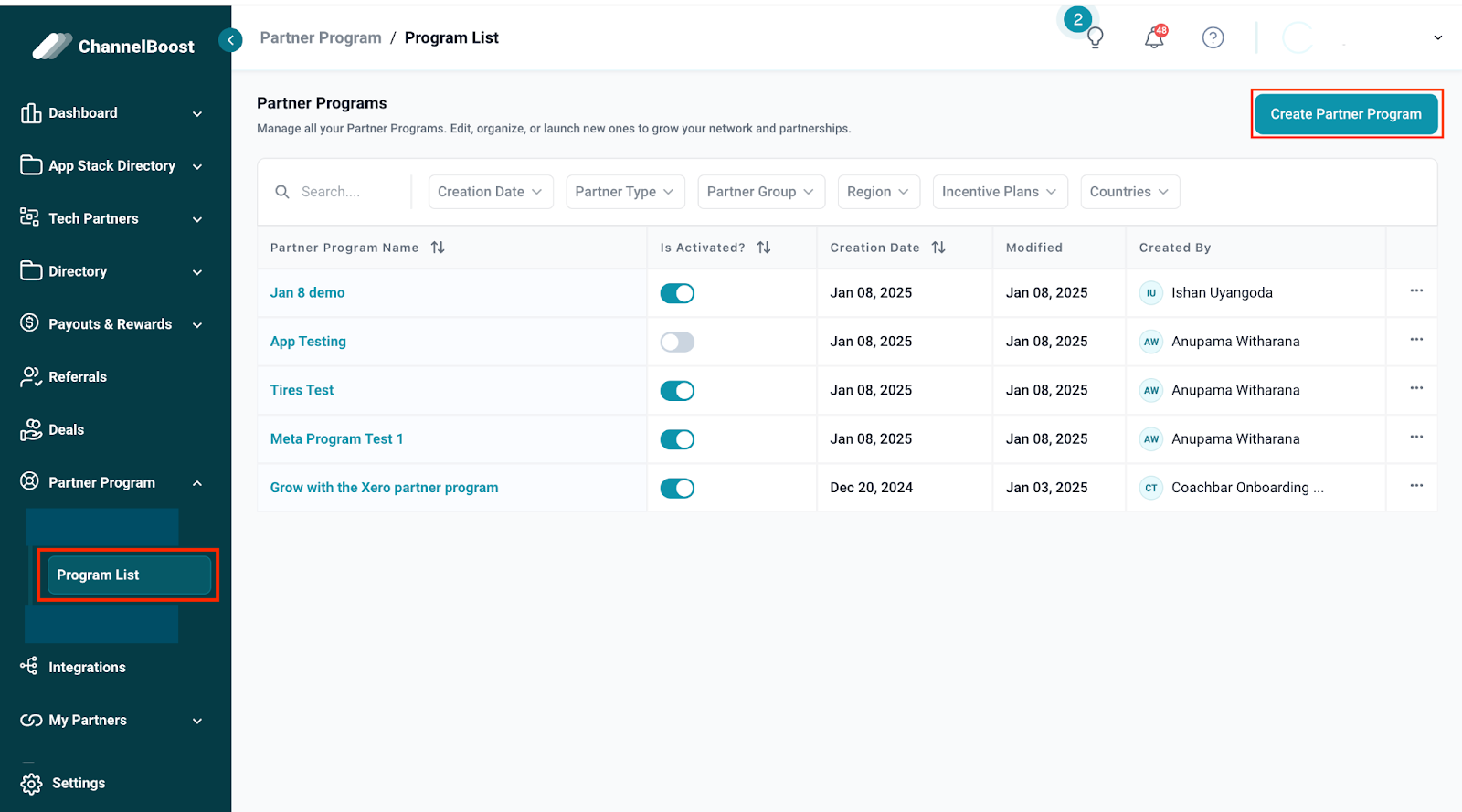 The Program List is where providers can create, manage, and edit partner programs. This section includes powerful tools to ensure ease of use and comprehensive functionality.