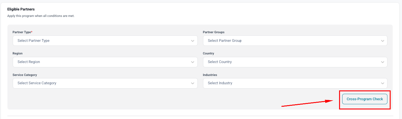 - By clicking the Cross Program Check button, you can view a list of partners who meet the eligibility criteria but are already enrolled in other active programs.