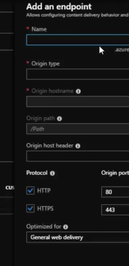 - Name: Enter a unique name for the endpoint (e.g., cdn-endpoint-123).