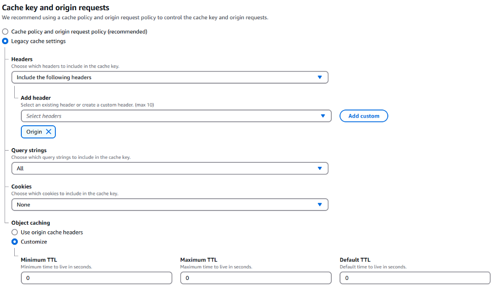 - Cache Settings: Select Legacy Cache Settings.