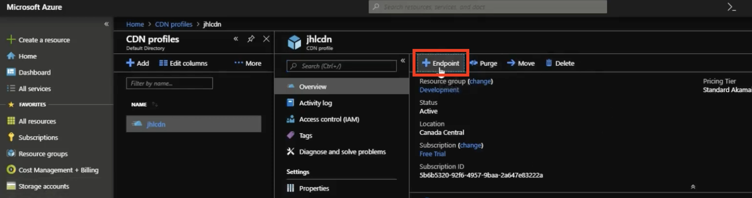 - On the CDN profile page, click + Endpoint.