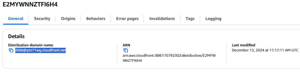 - Use the generated Distribution Domain Name to access the content.