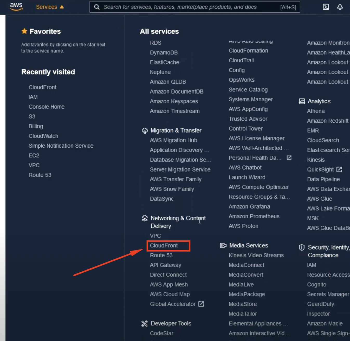 1.1 Navigate to CloudFront
