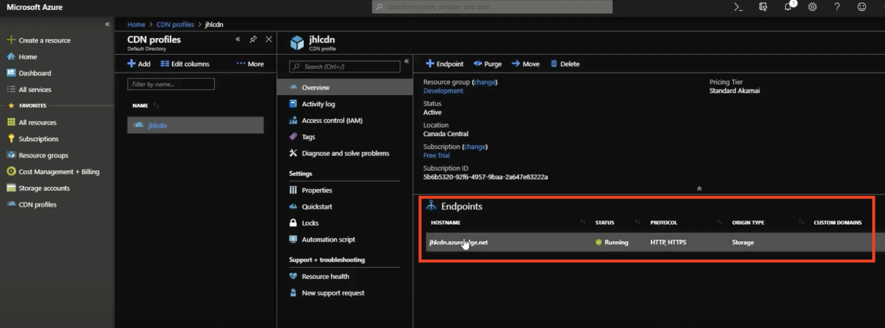 - The newly created endpoint will now appear in the list of endpoints for the CDN profile.