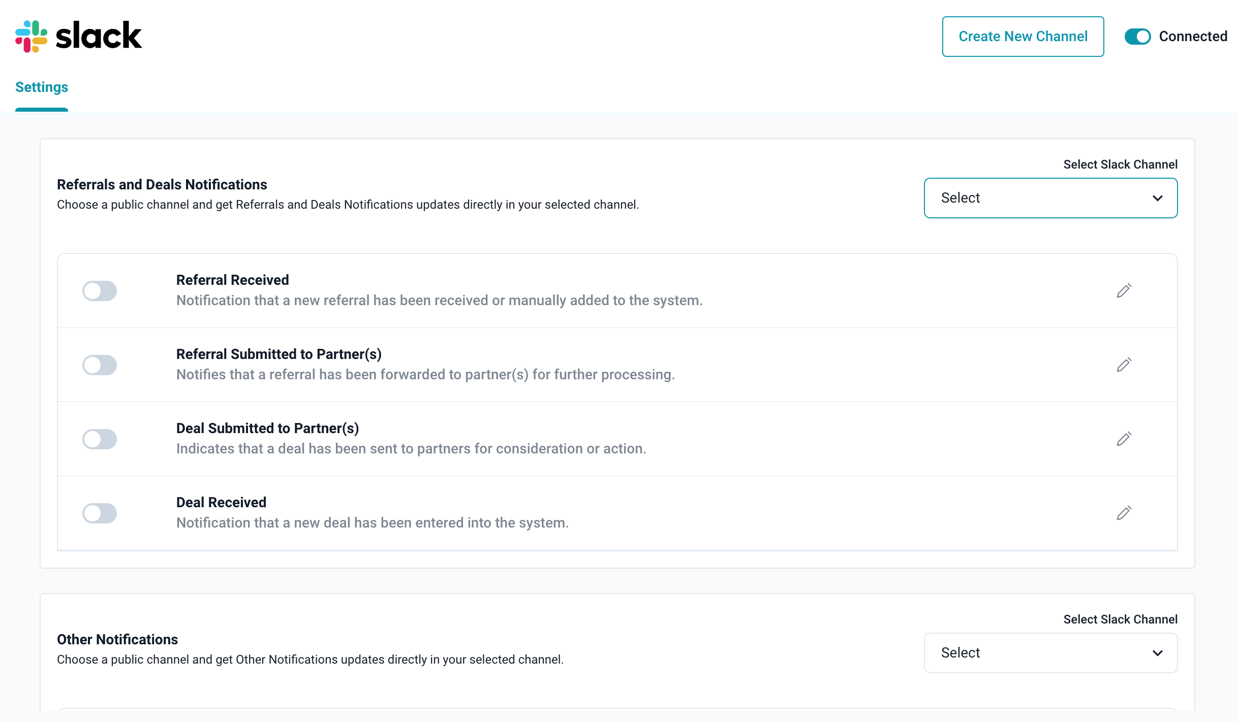 - Slack will only notify your selected channel when a referral with those tags is created or updated.